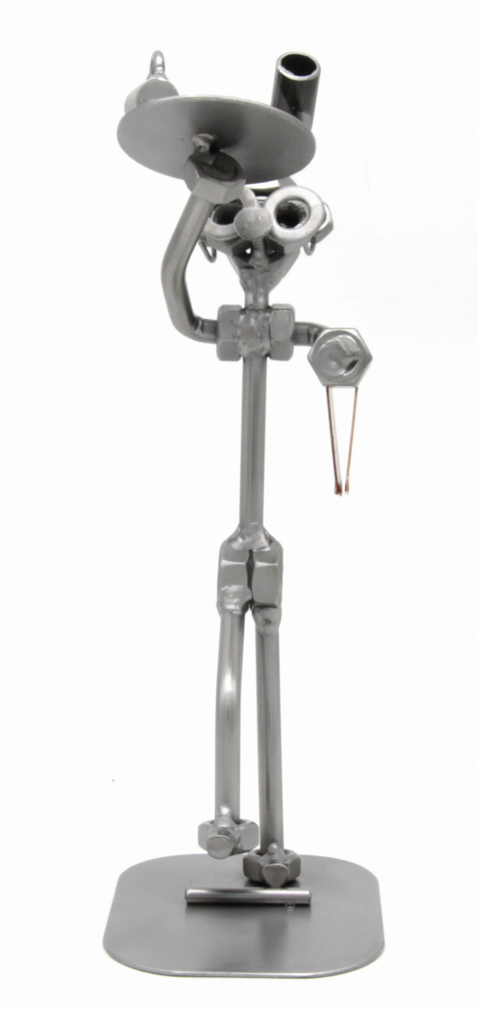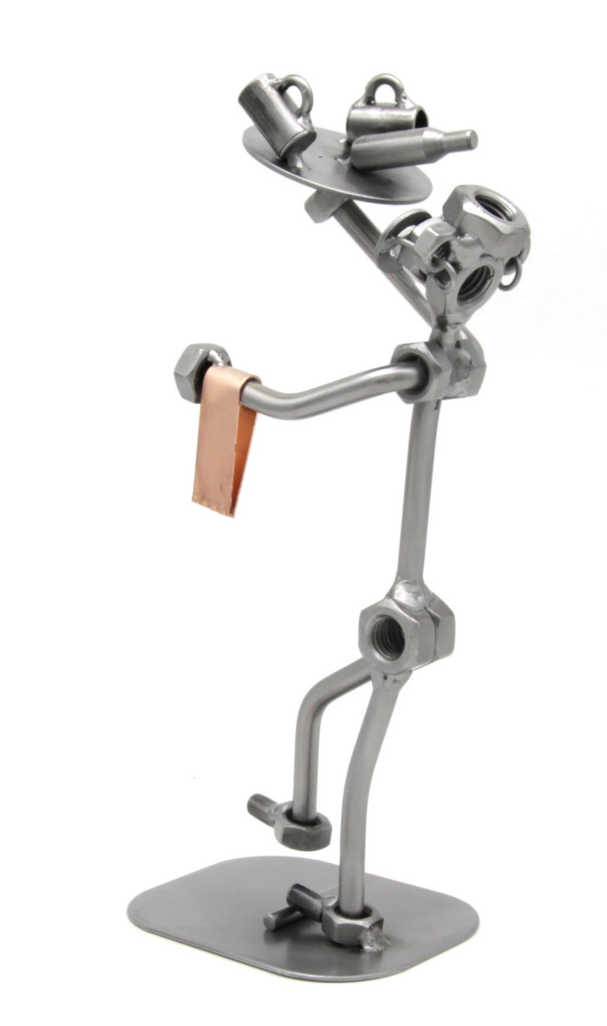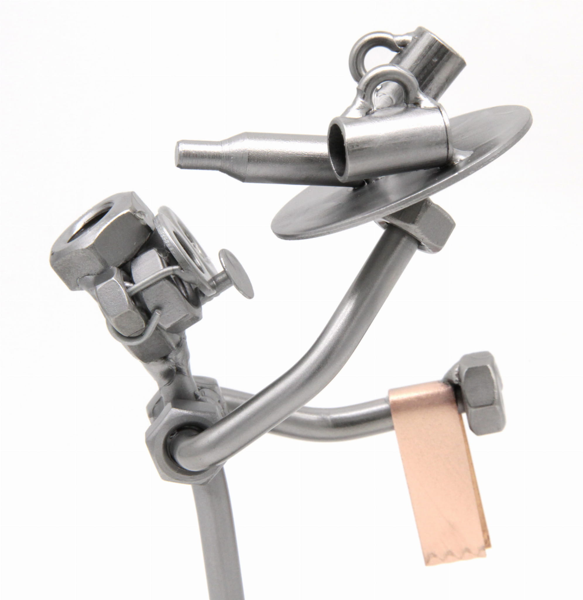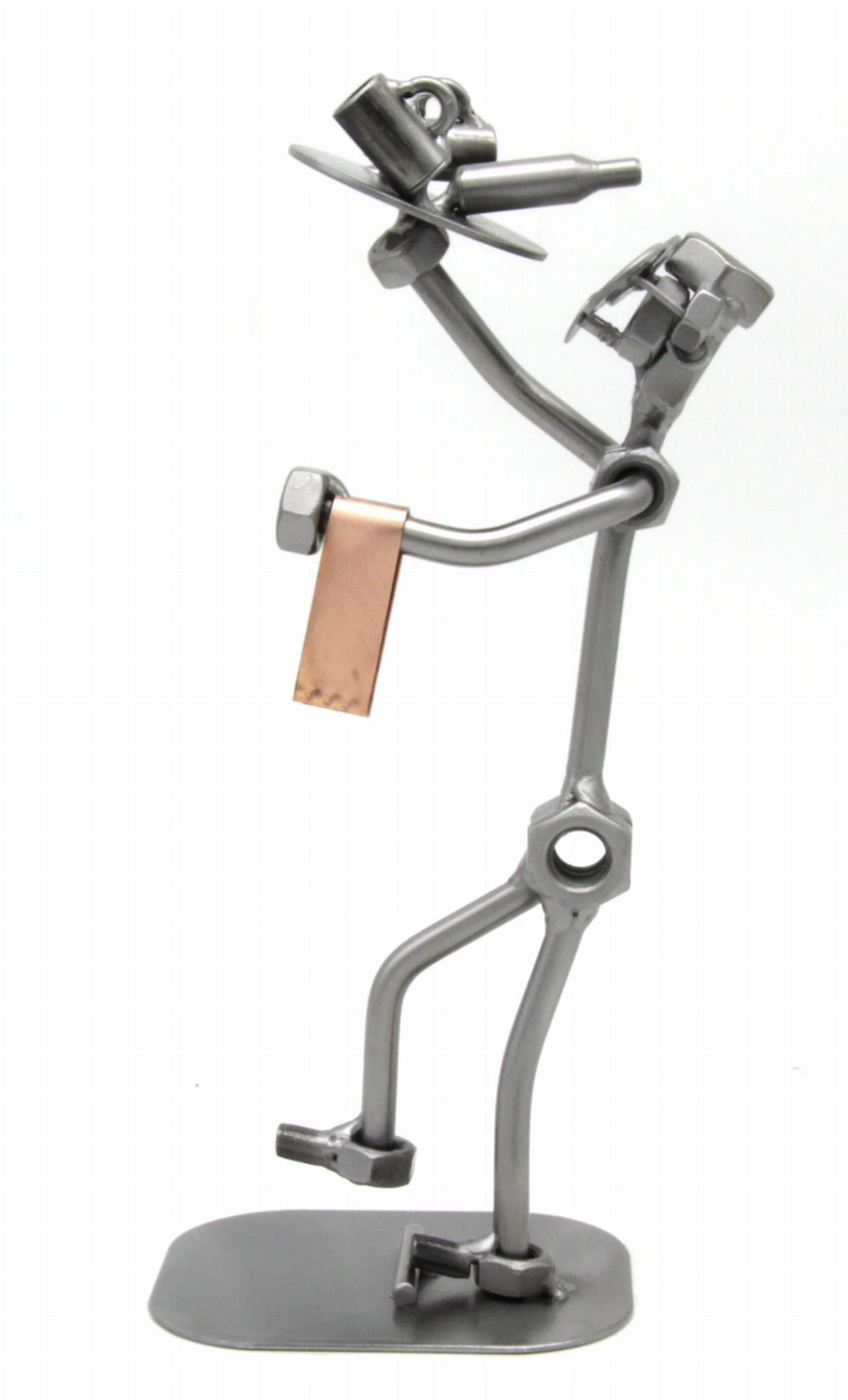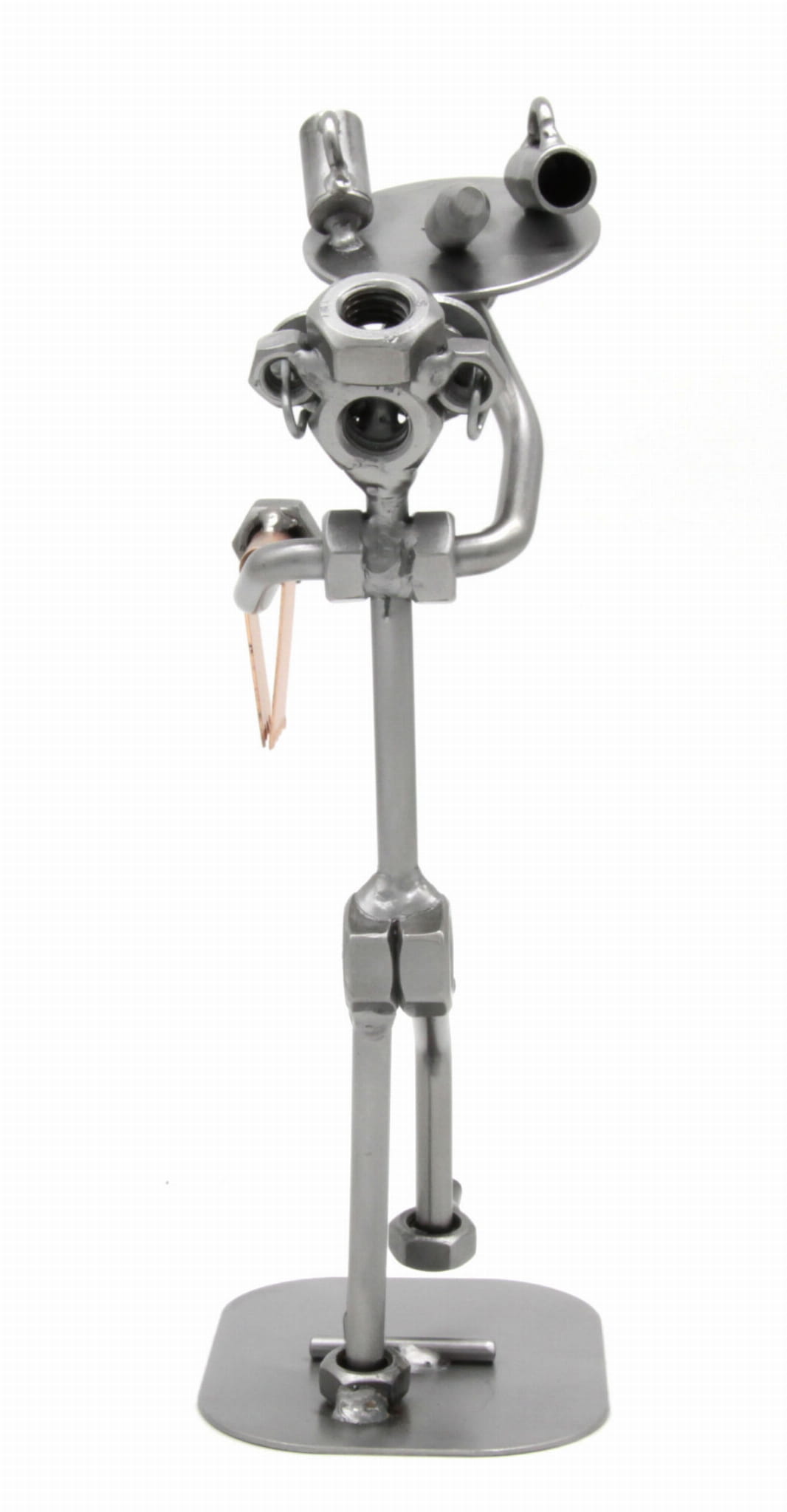 Figurka jest wykonana w 100% ręcznie ze stalowych blach, prętów i nakrętek przez naszą firmę.