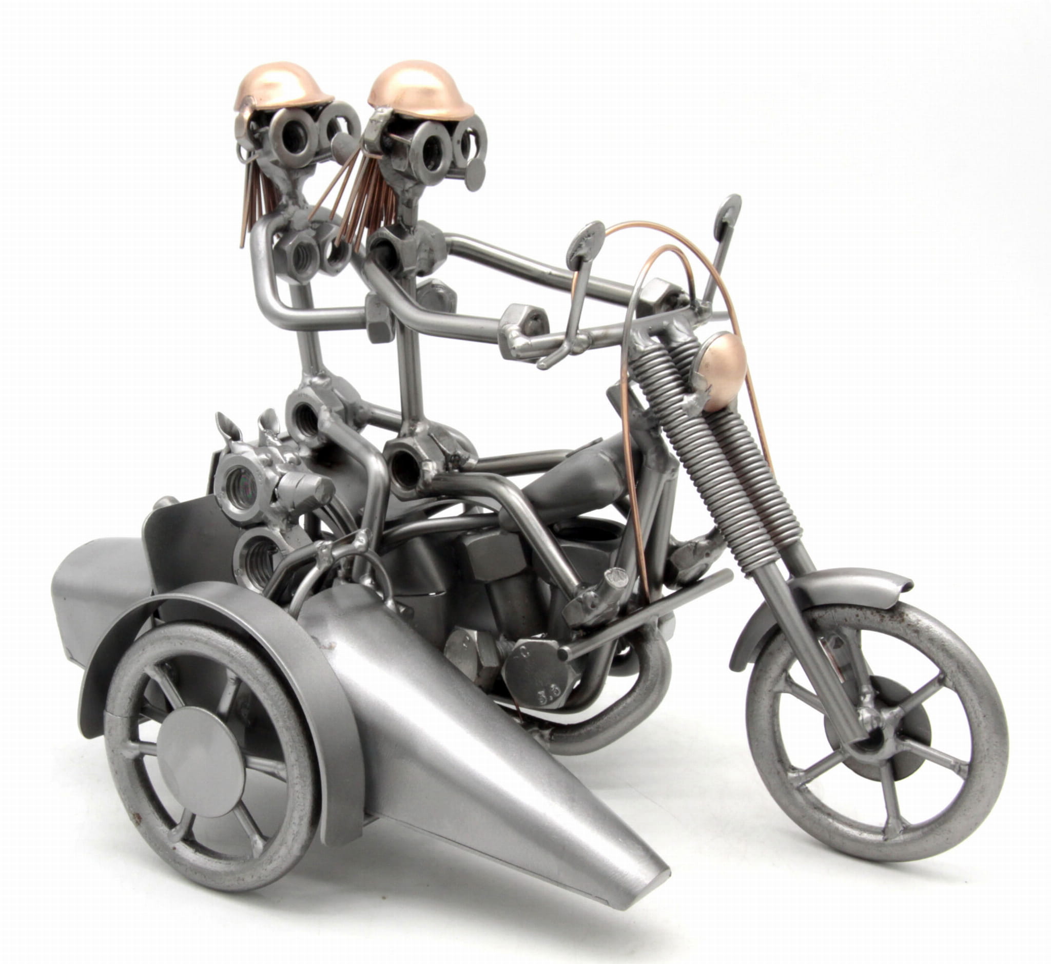 Figurka motor chopper 2 osoby z wózkiem bocznym i psem to świetny produkt na prezent dla motorzysty.