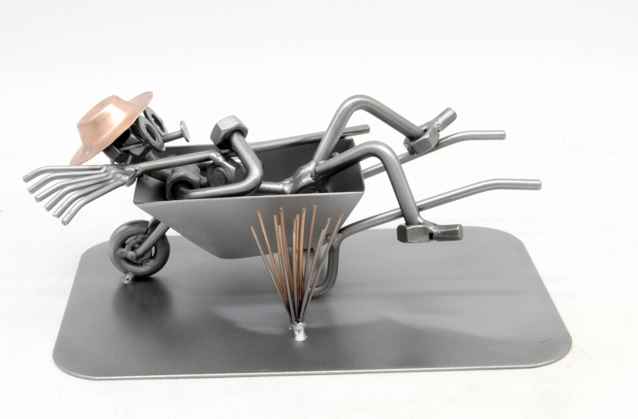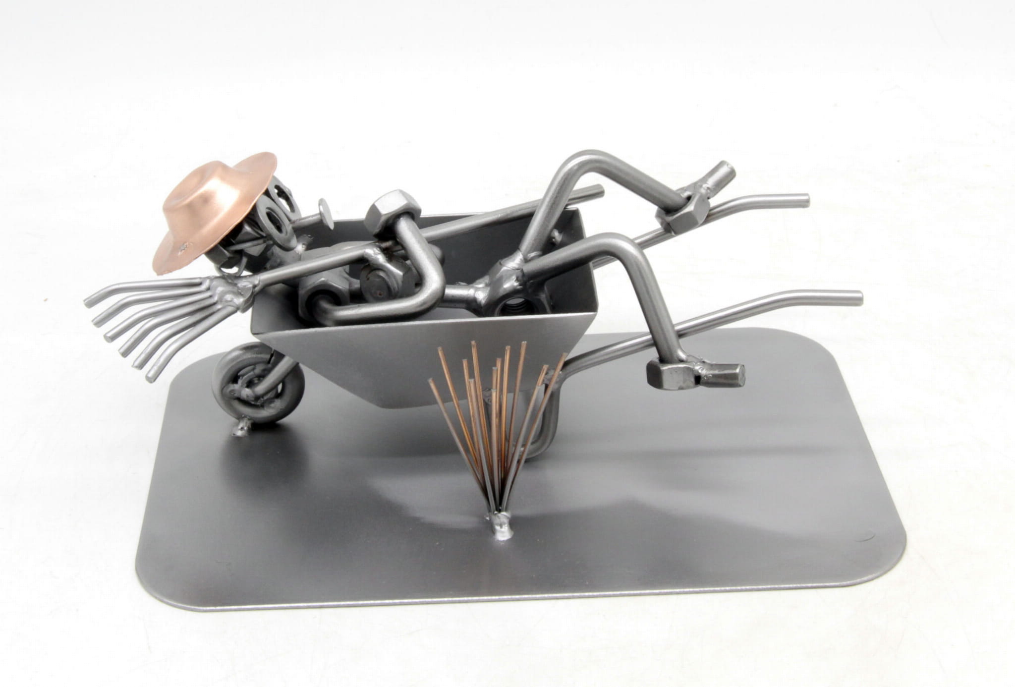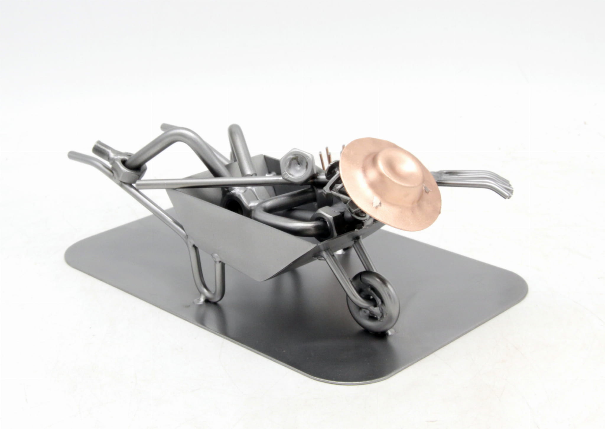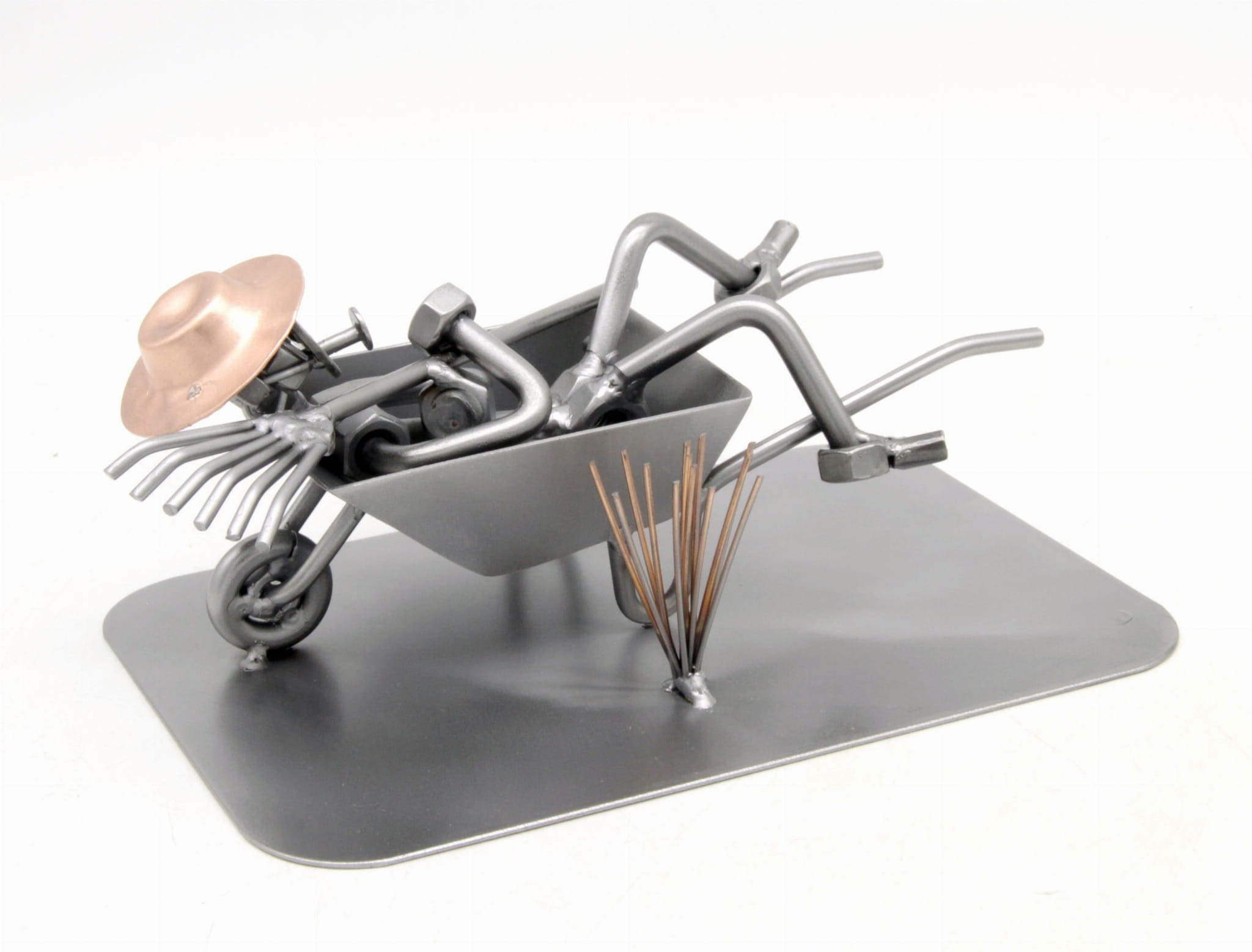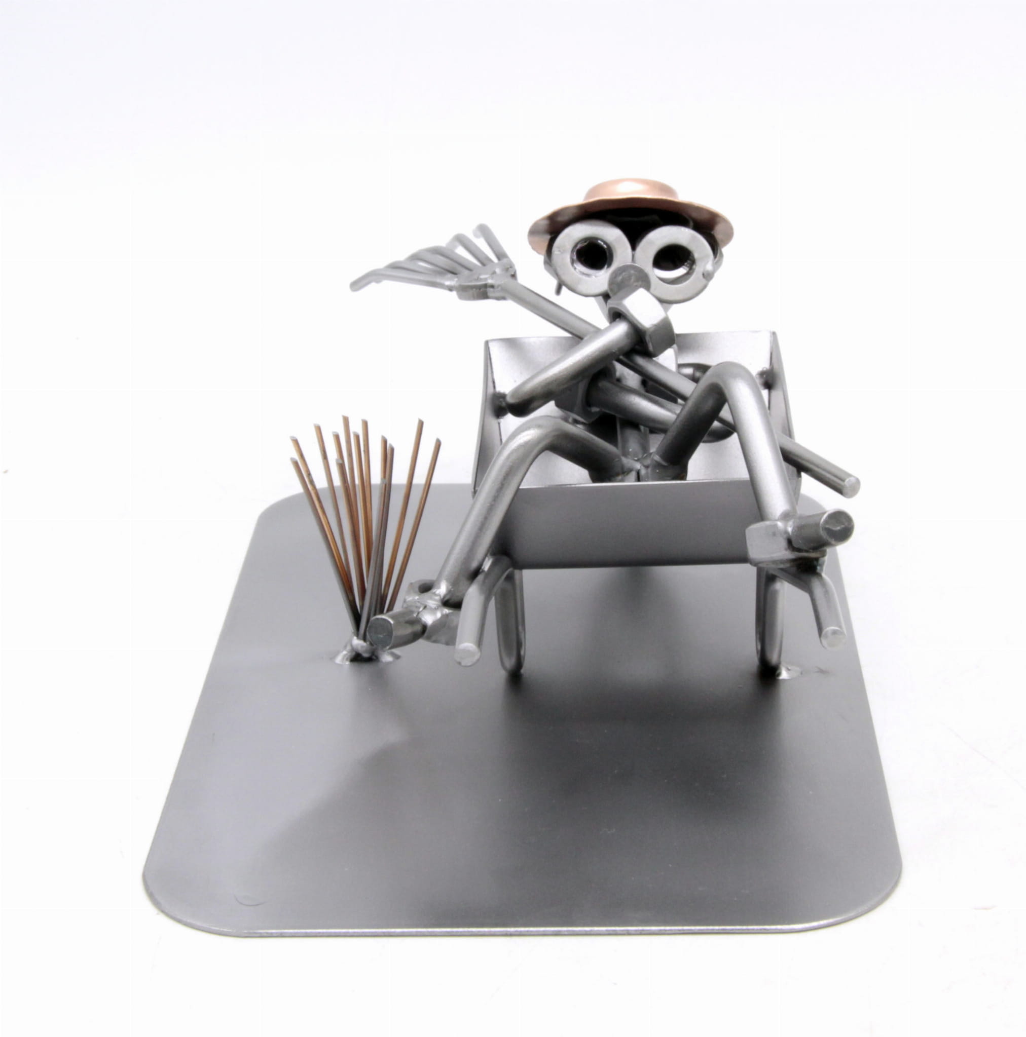 FIGURKA Z METALU - OGRODNIK TACZKA