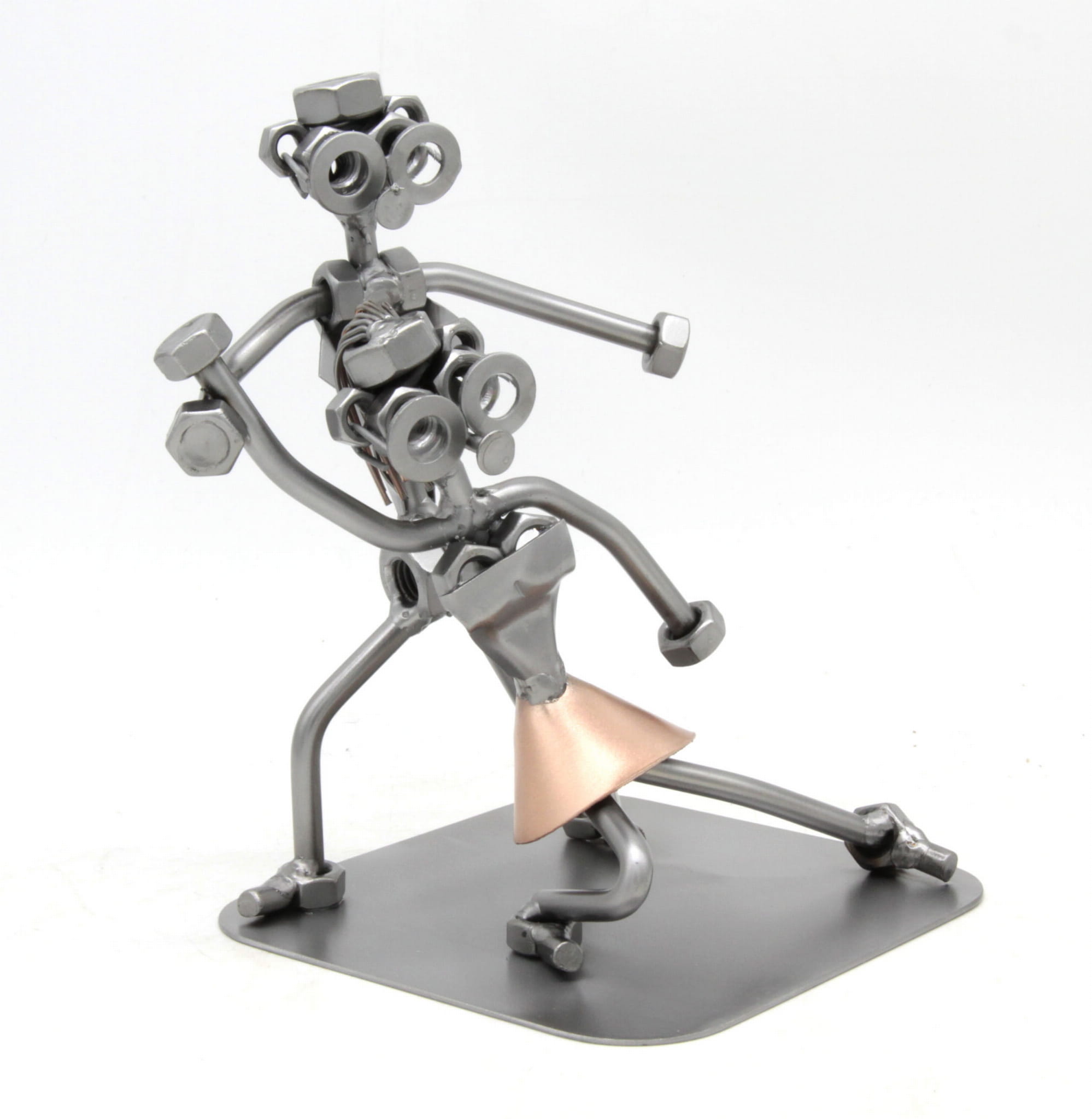 Figurka jest wykonana w 100% ręcznie ze stalowych blach, prętów i nakrętek przez naszą firmę.