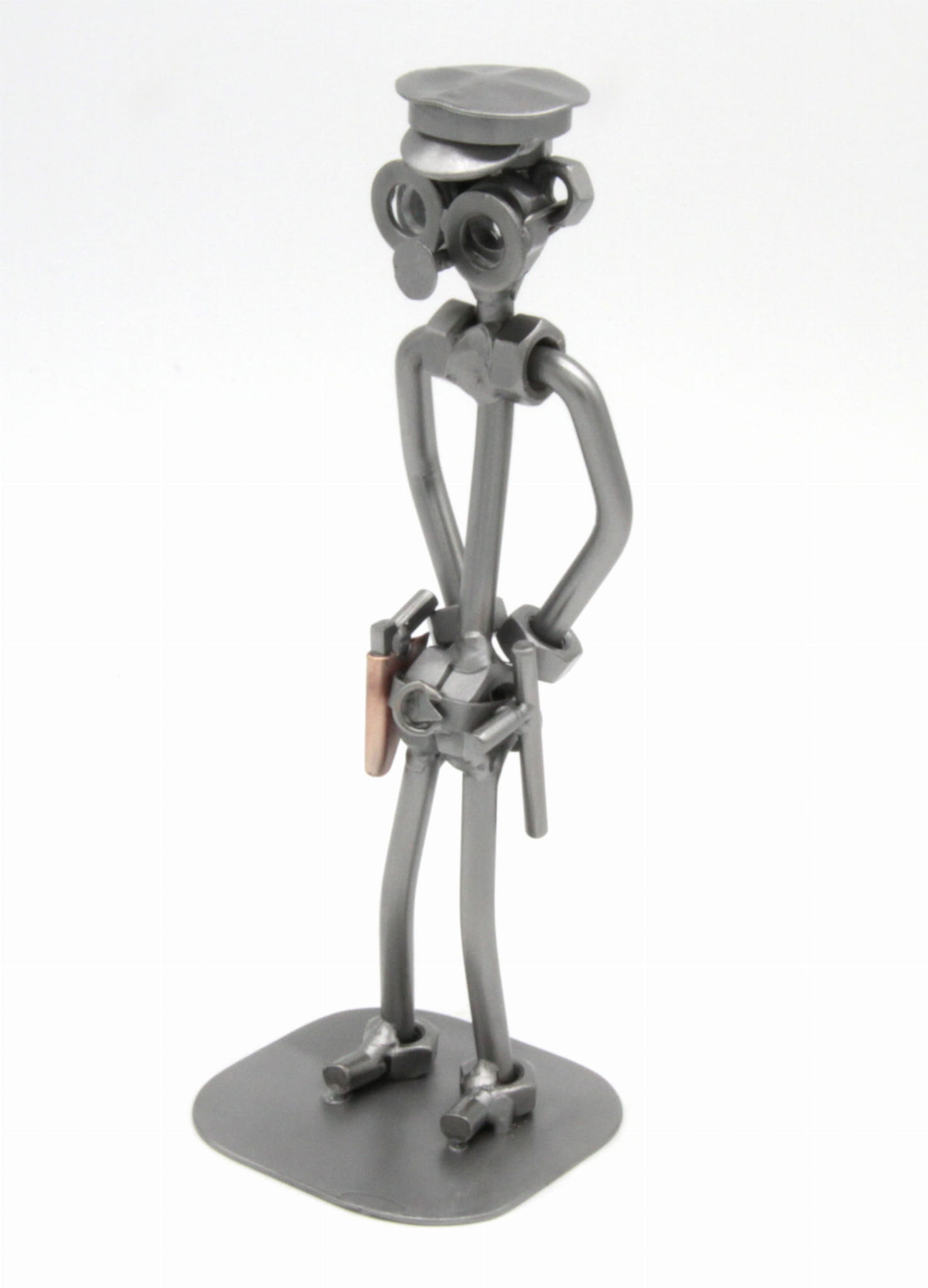 Figurka jest wykonana w 100% ręcznie ze stalowych blach, prętów i nakrętek przez naszą firmę.