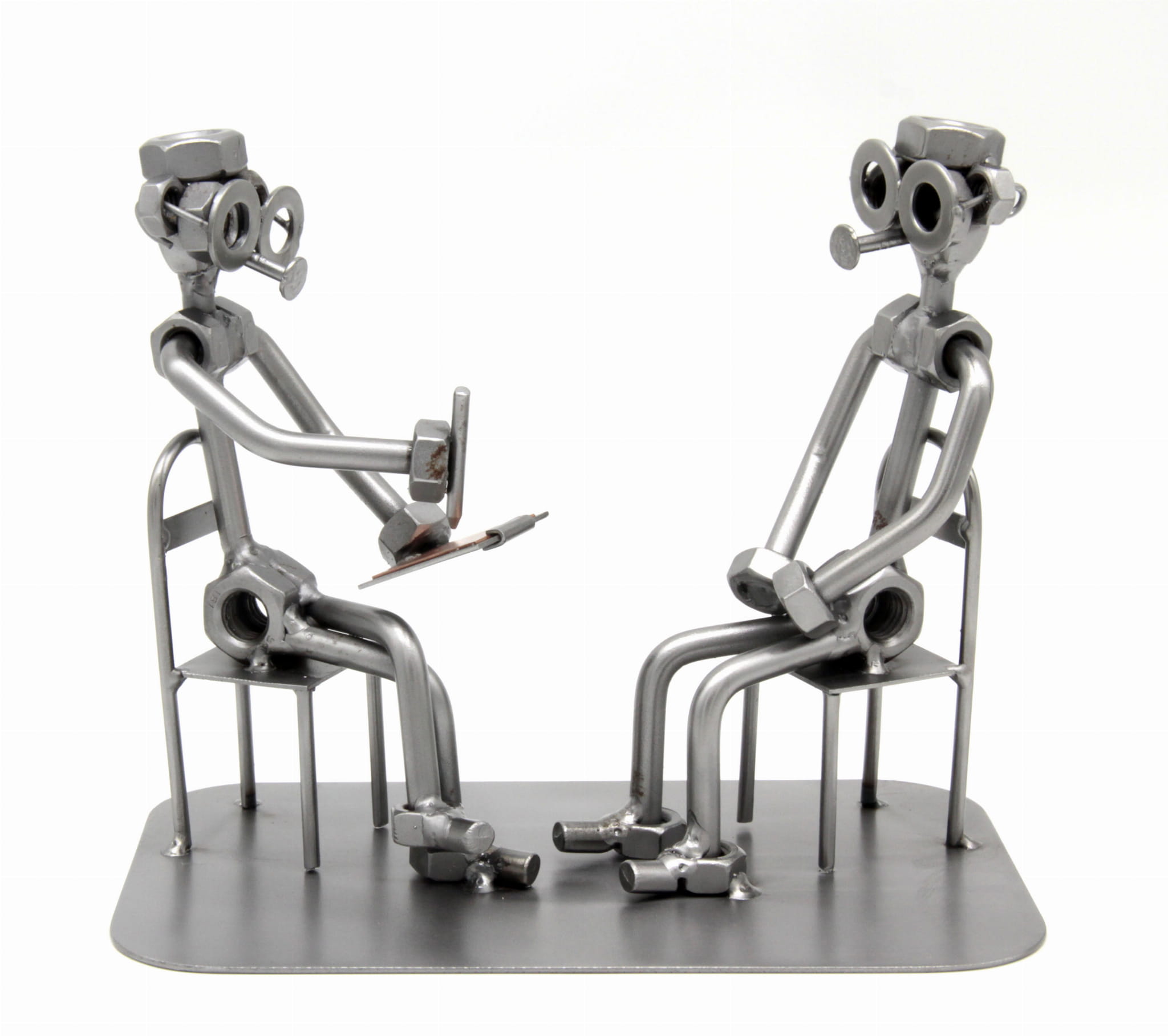 Figurka jest wykonana w 100% ręcznie ze stalowych blach, prętów i nakrętek przez naszą firmę.