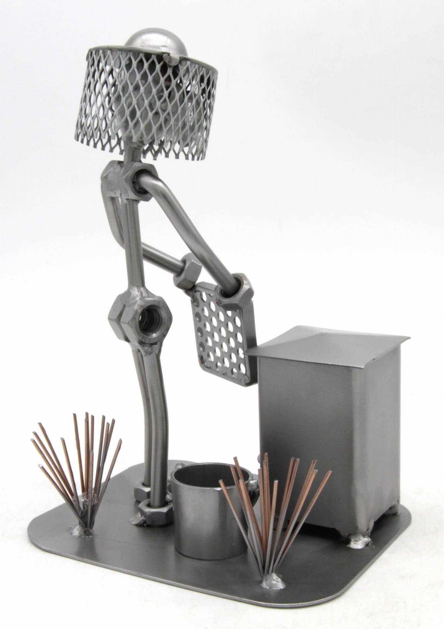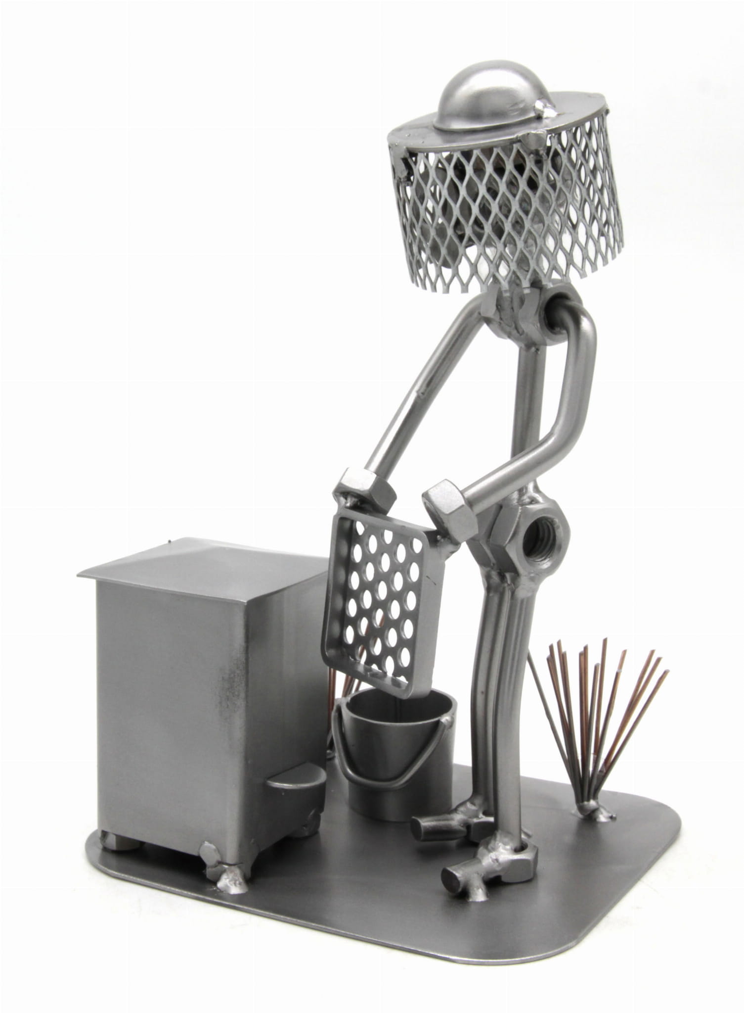 Figurka jest wykonana w 100% ręcznie ze stalowych blach, prętów i nakrętek przez naszą firmę.