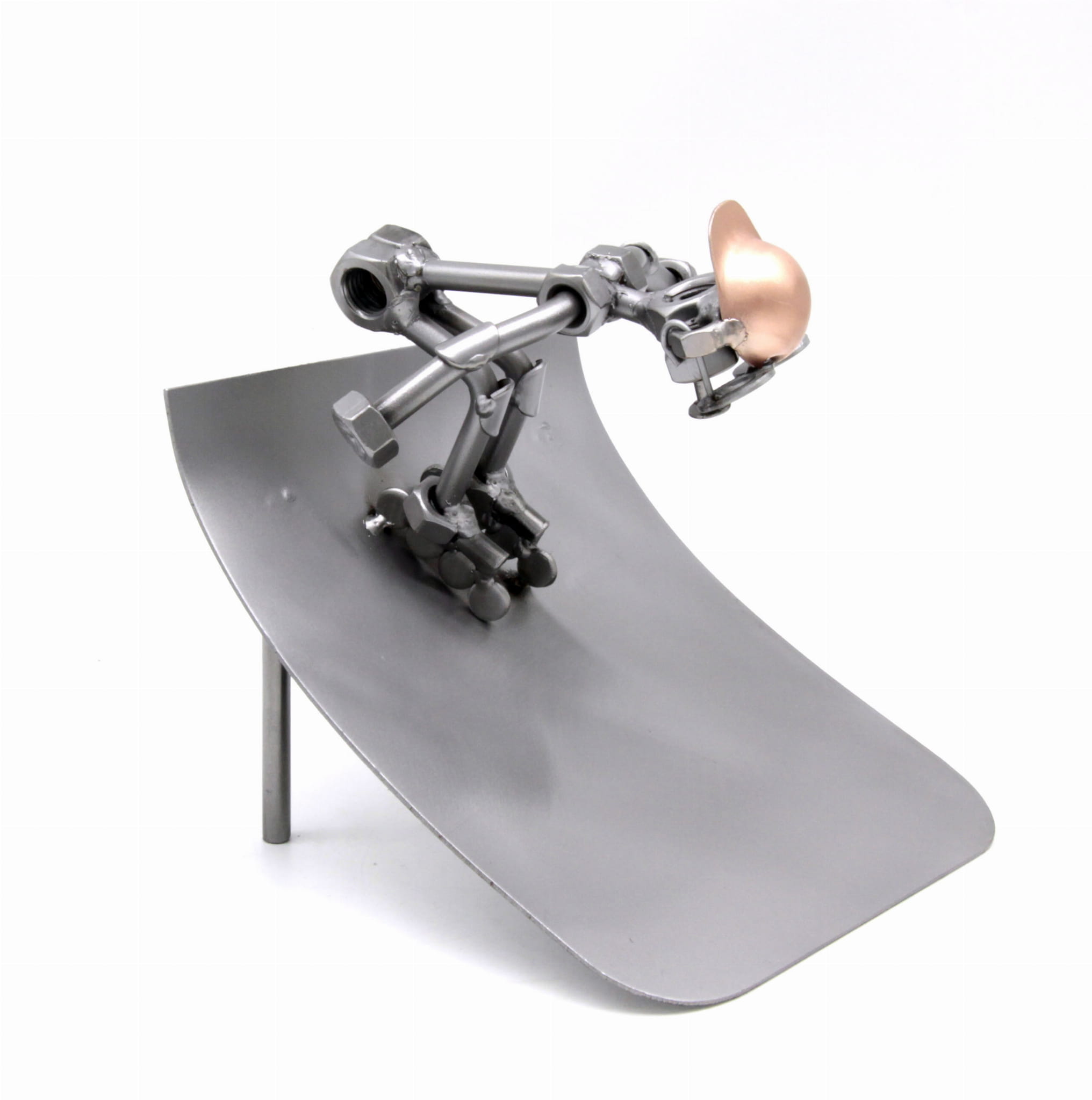 Figurka jest wykonana w 100% ręcznie ze stalowych blach, prętów i nakrętek przez naszą firmę.