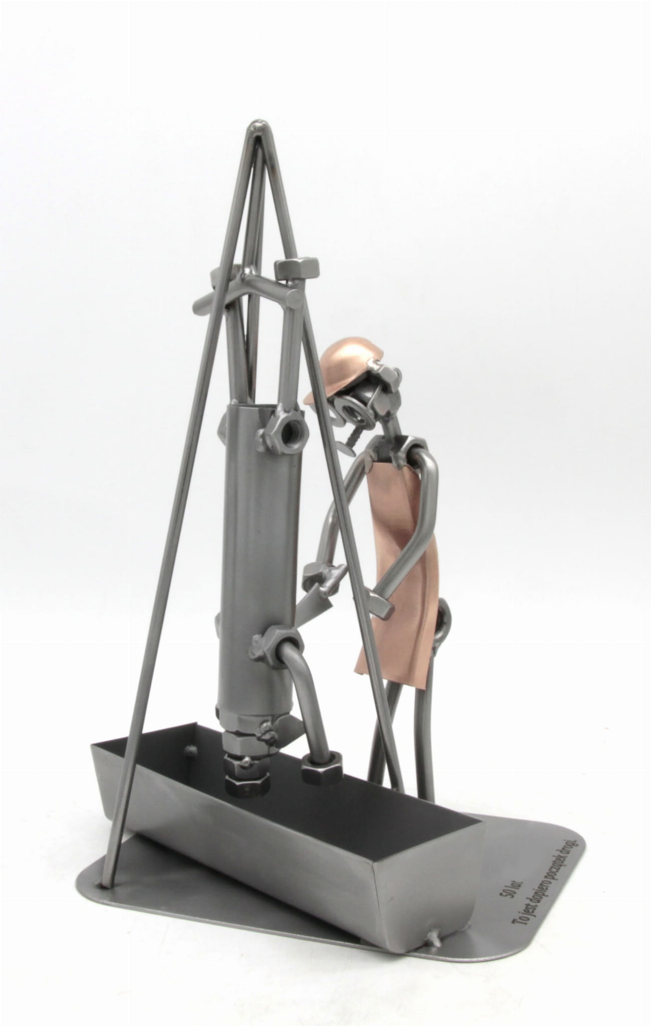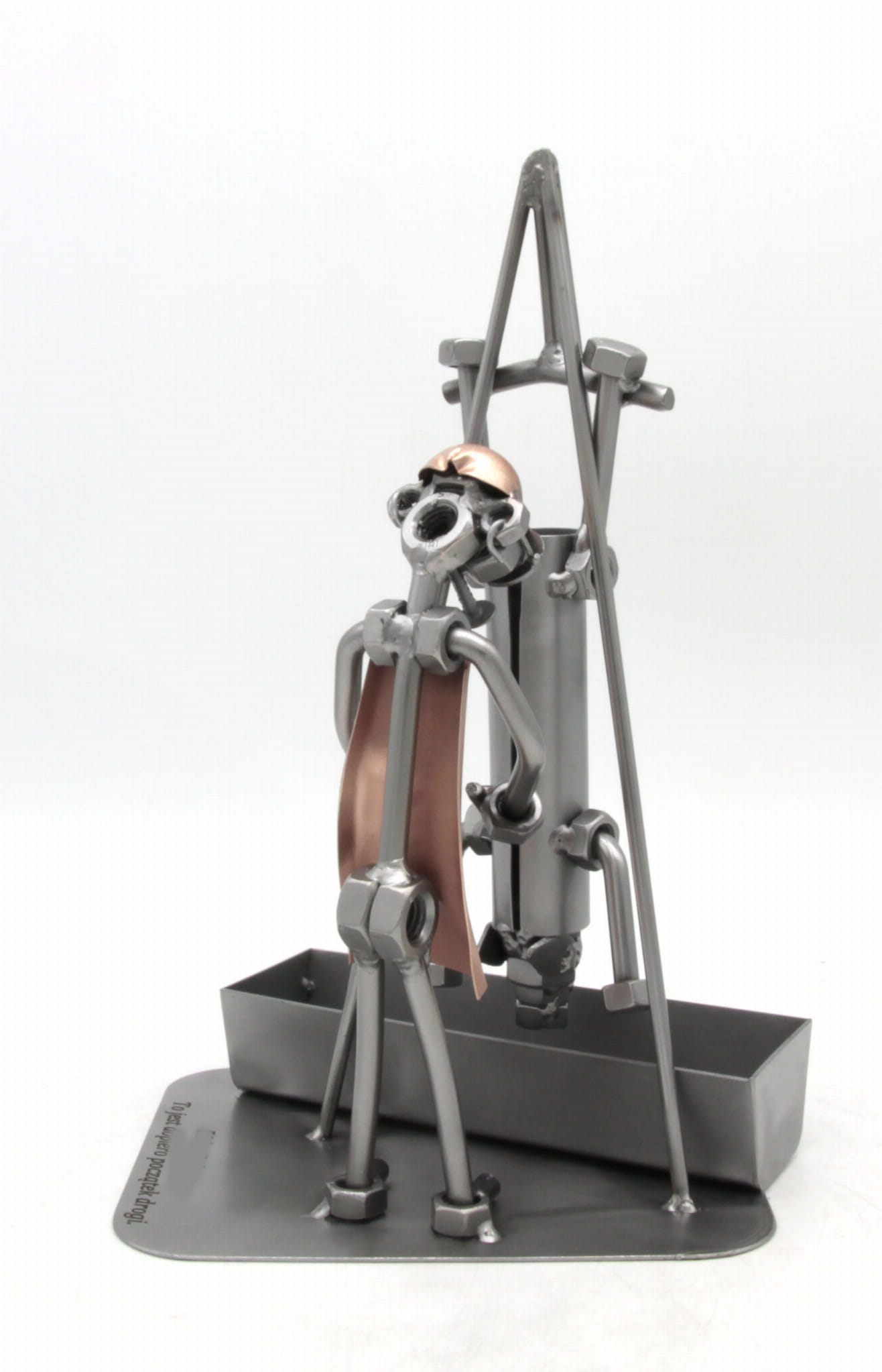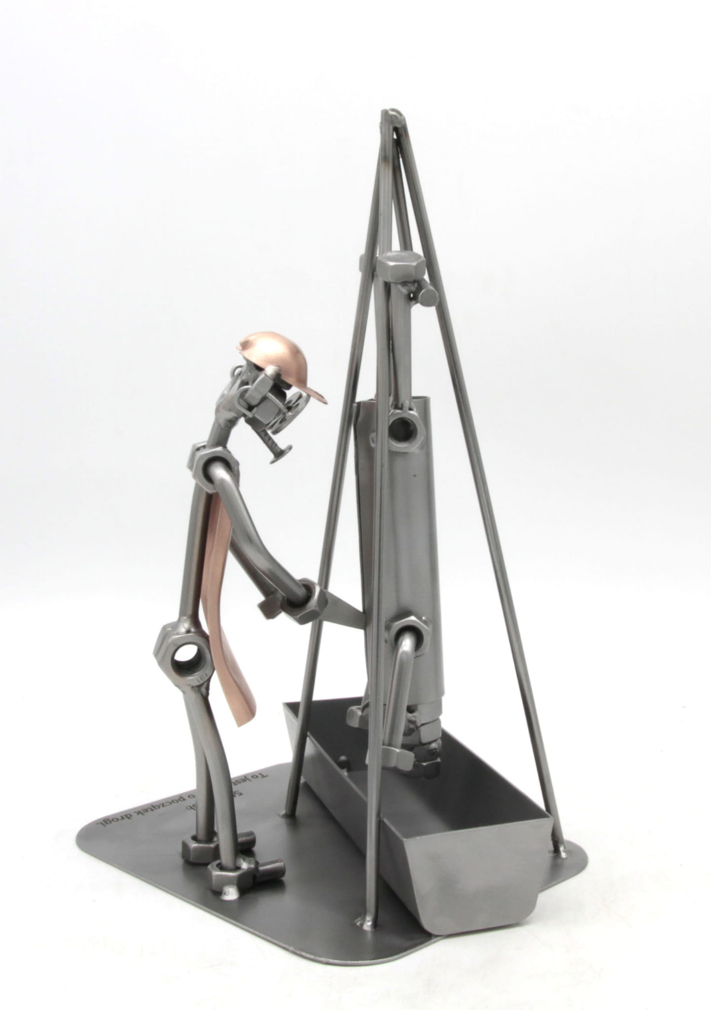 Figurka jest wykonana w 100% ręcznie ze stalowych blach, prętów i nakrętek przez naszą firmę.