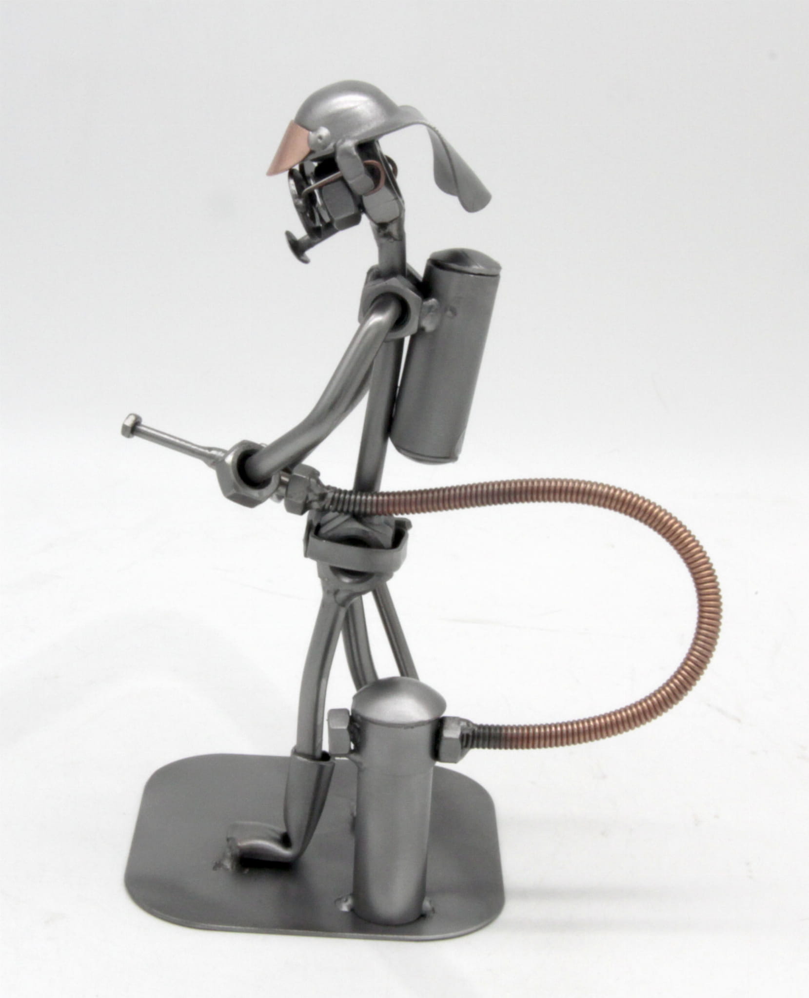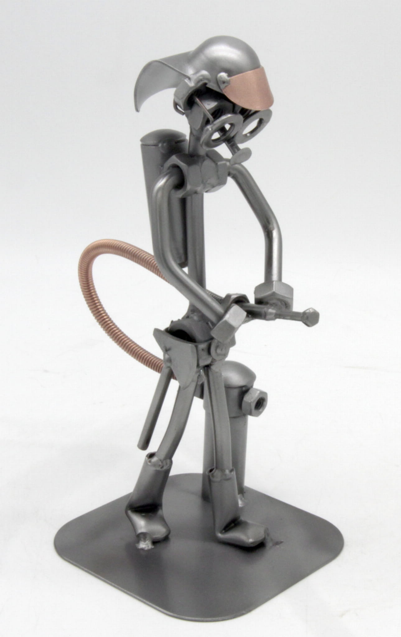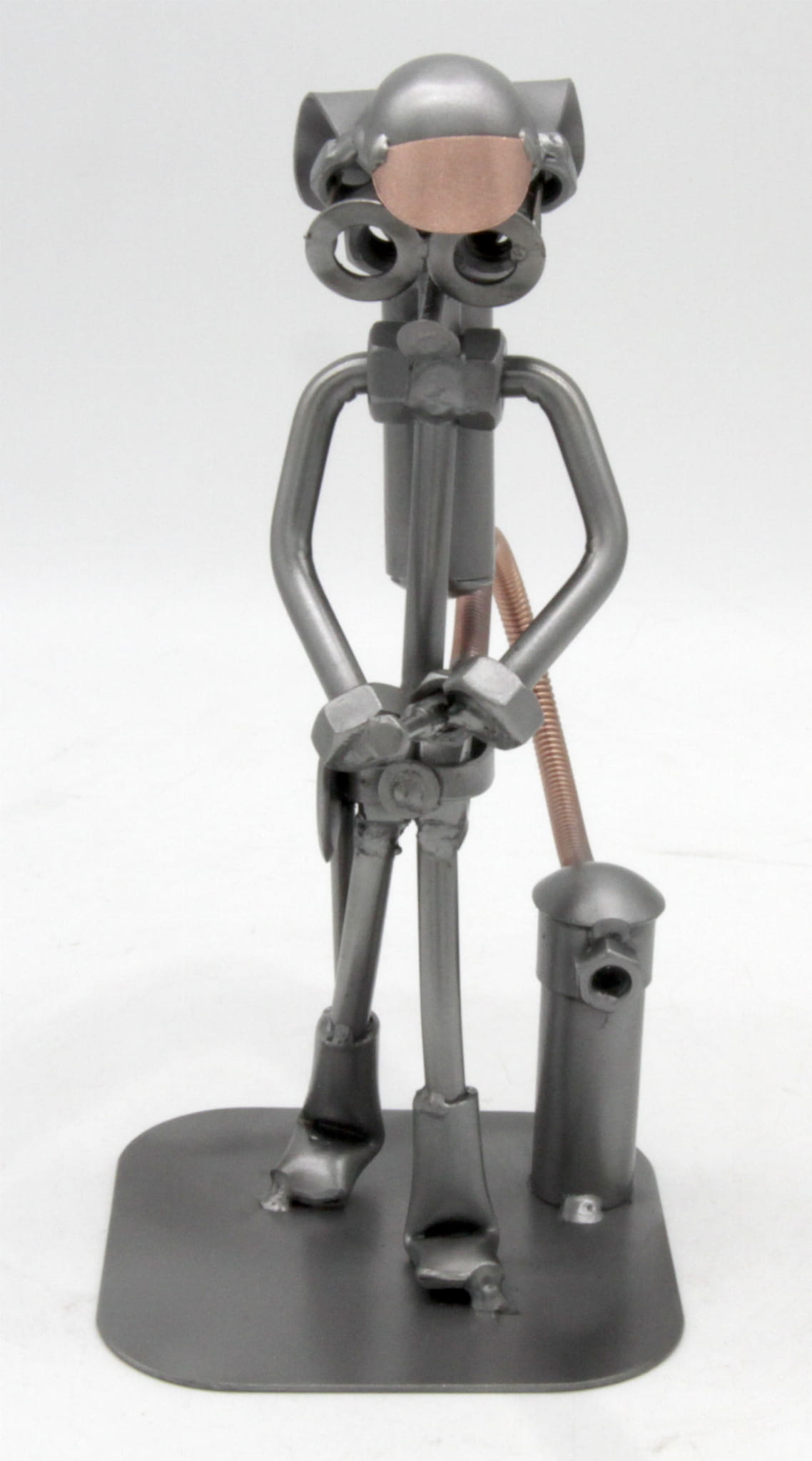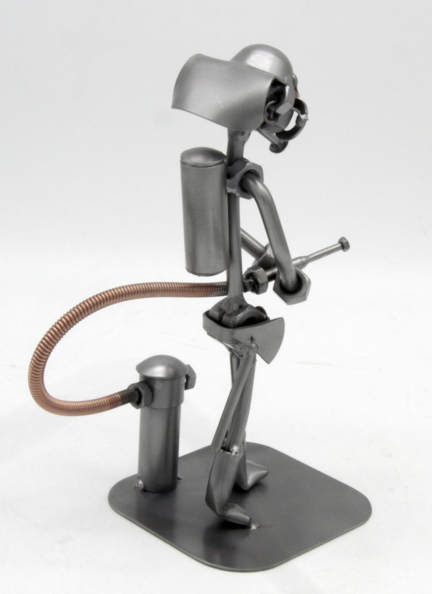 Figurka jest wykonana w 100% ręcznie ze stalowych blach, prętów i nakrętek przez naszą firmę.