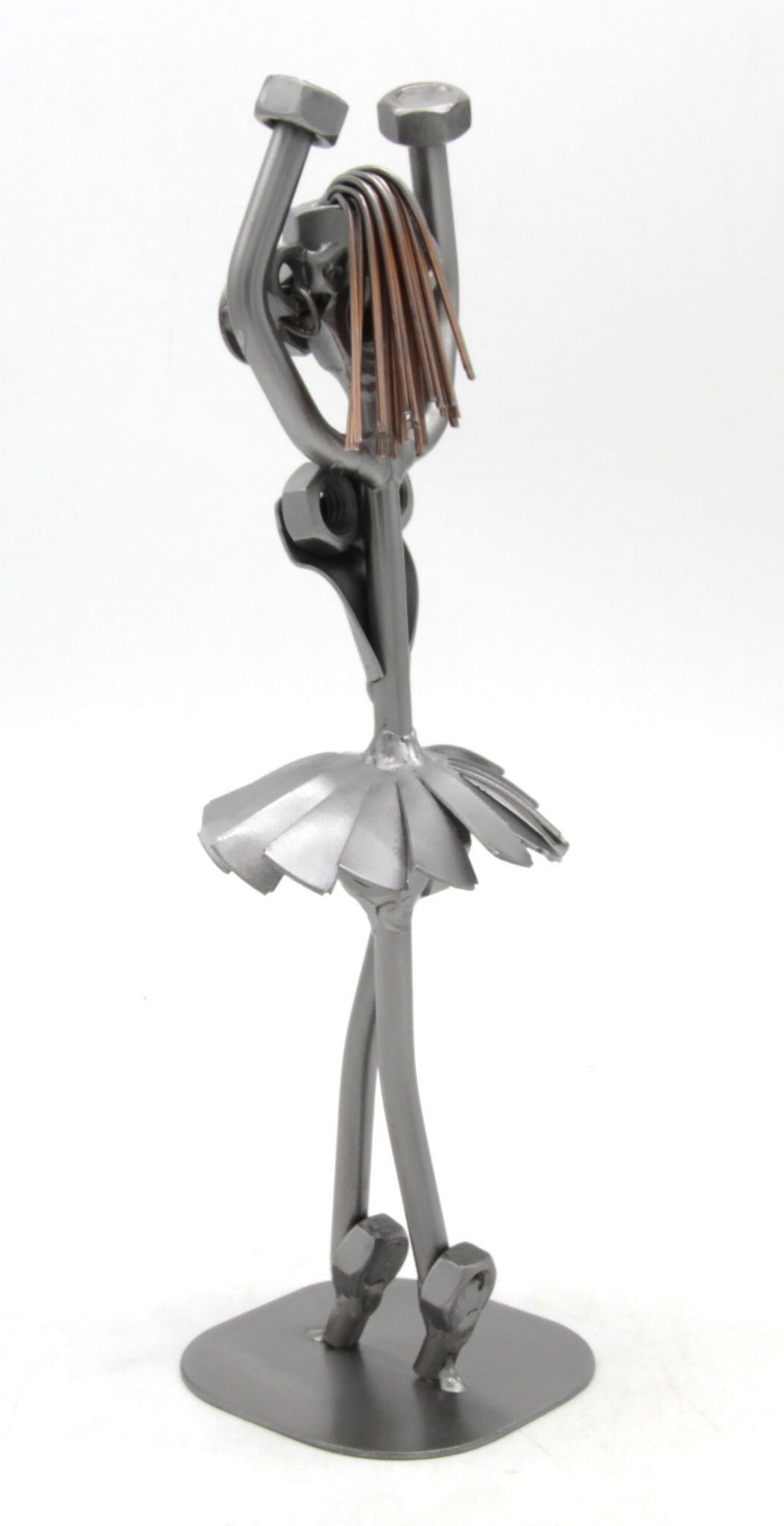Figurka jest wykonana w 100% ręcznie ze stalowych blach, prętów i nakrętek przez naszą firmę.