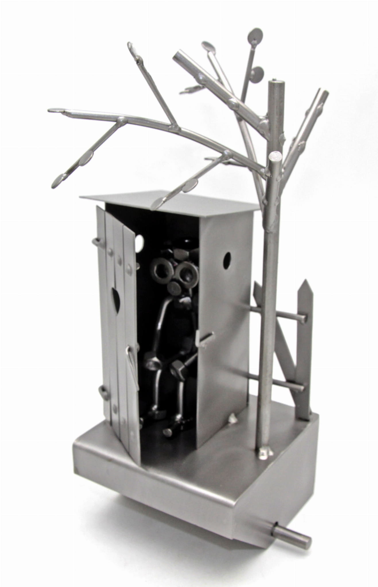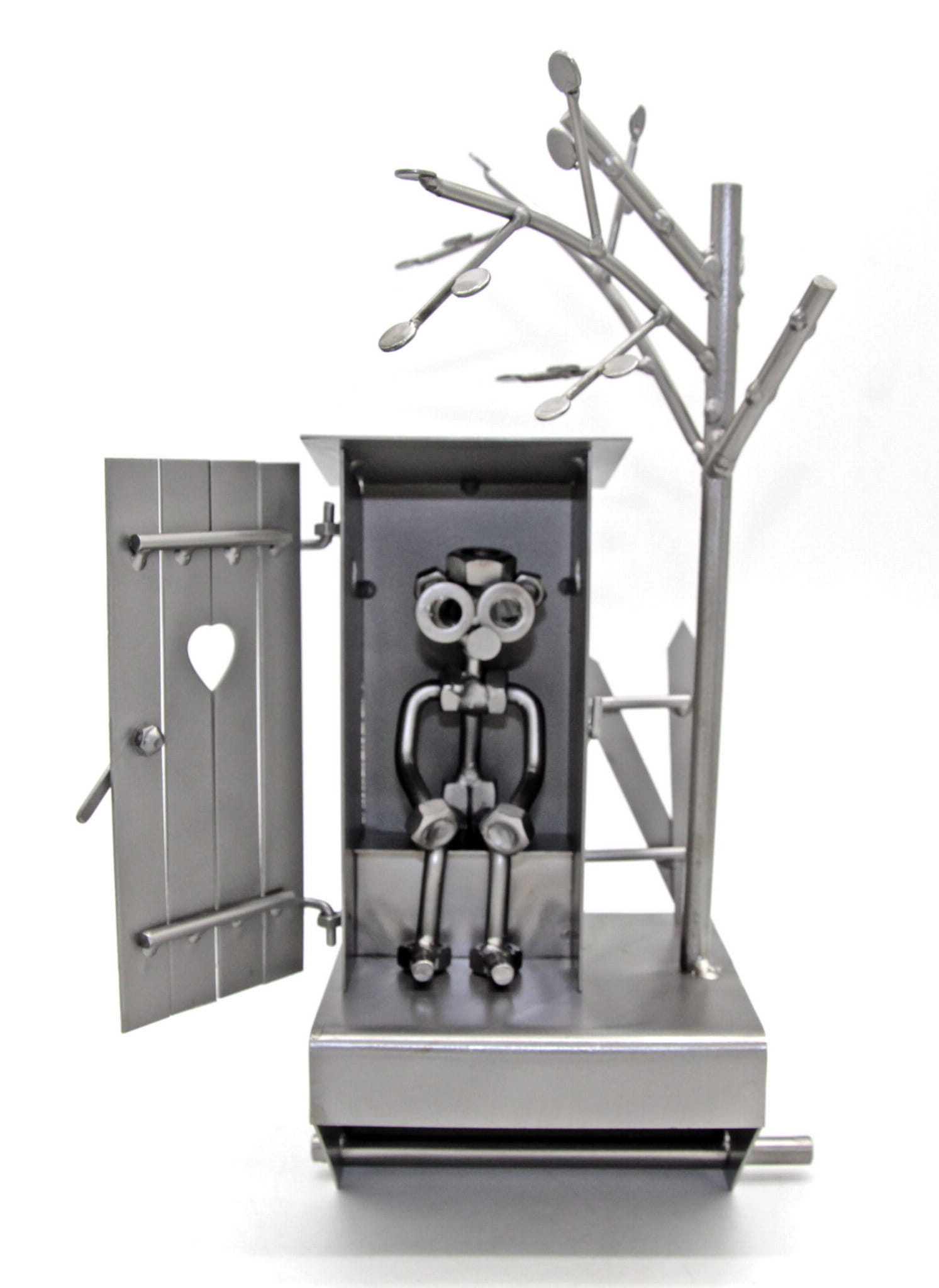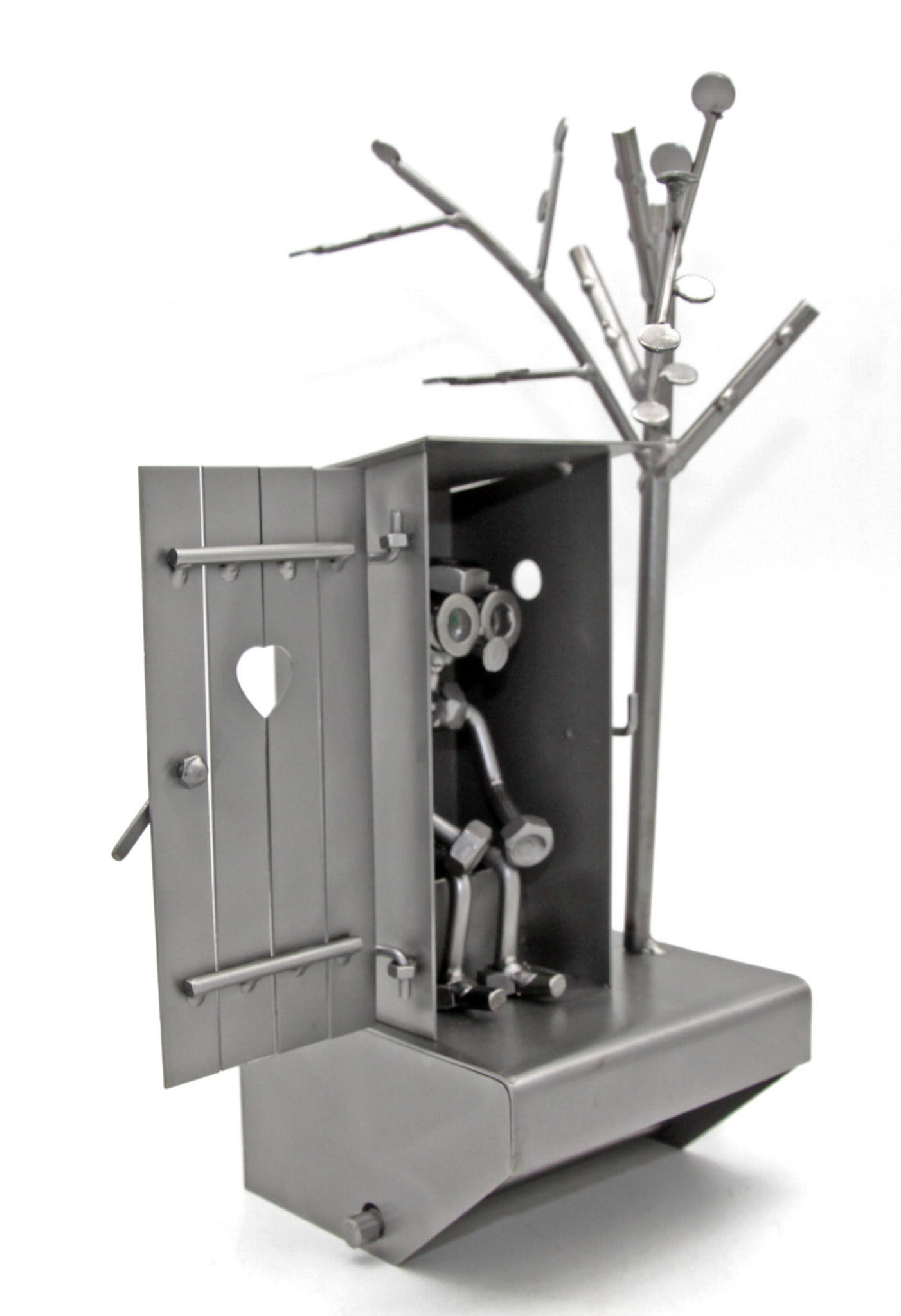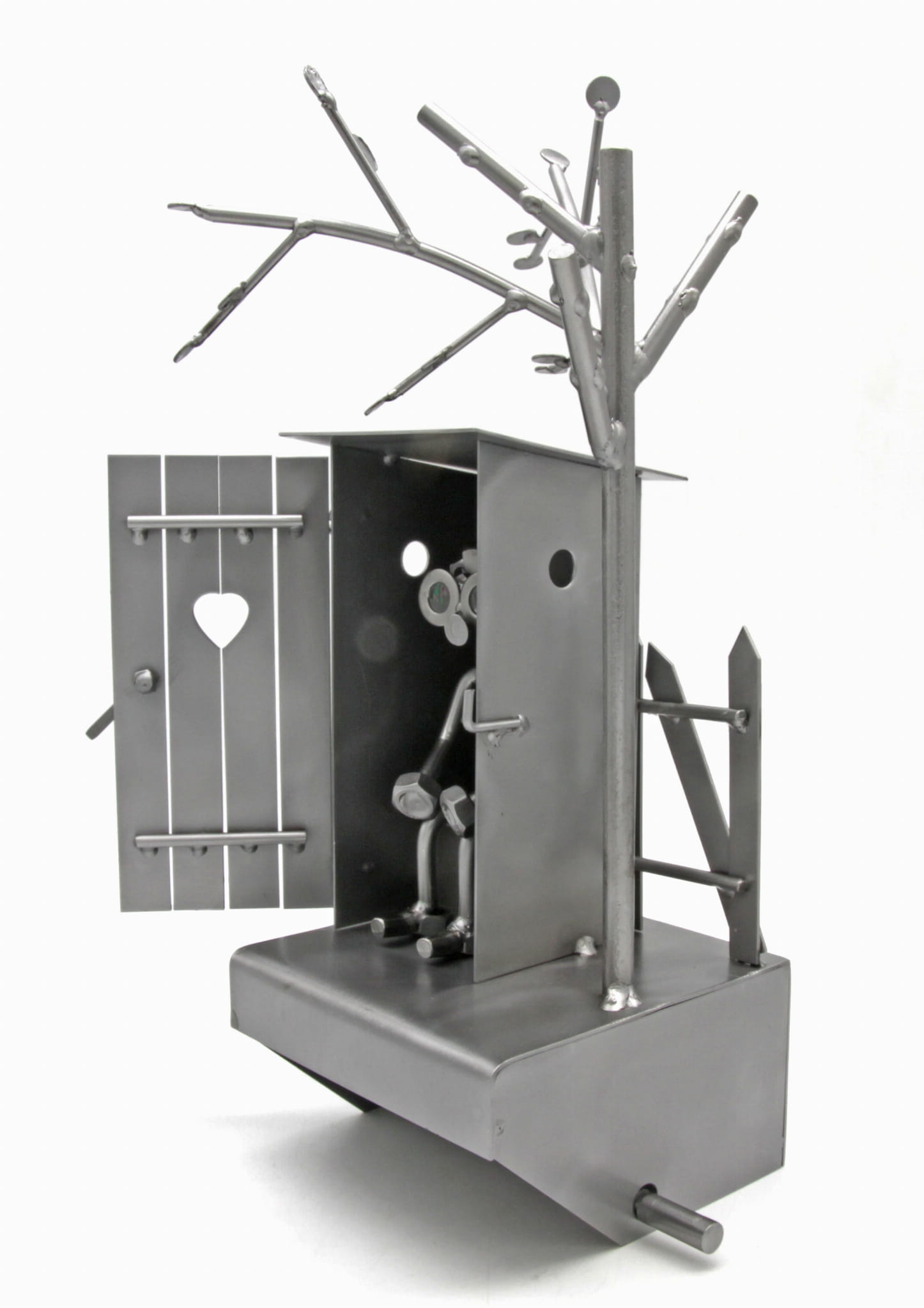 Figurka jest wykonana w 100% ręcznie ze stalowych blach, prętów i nakrętek przez naszą firmę.