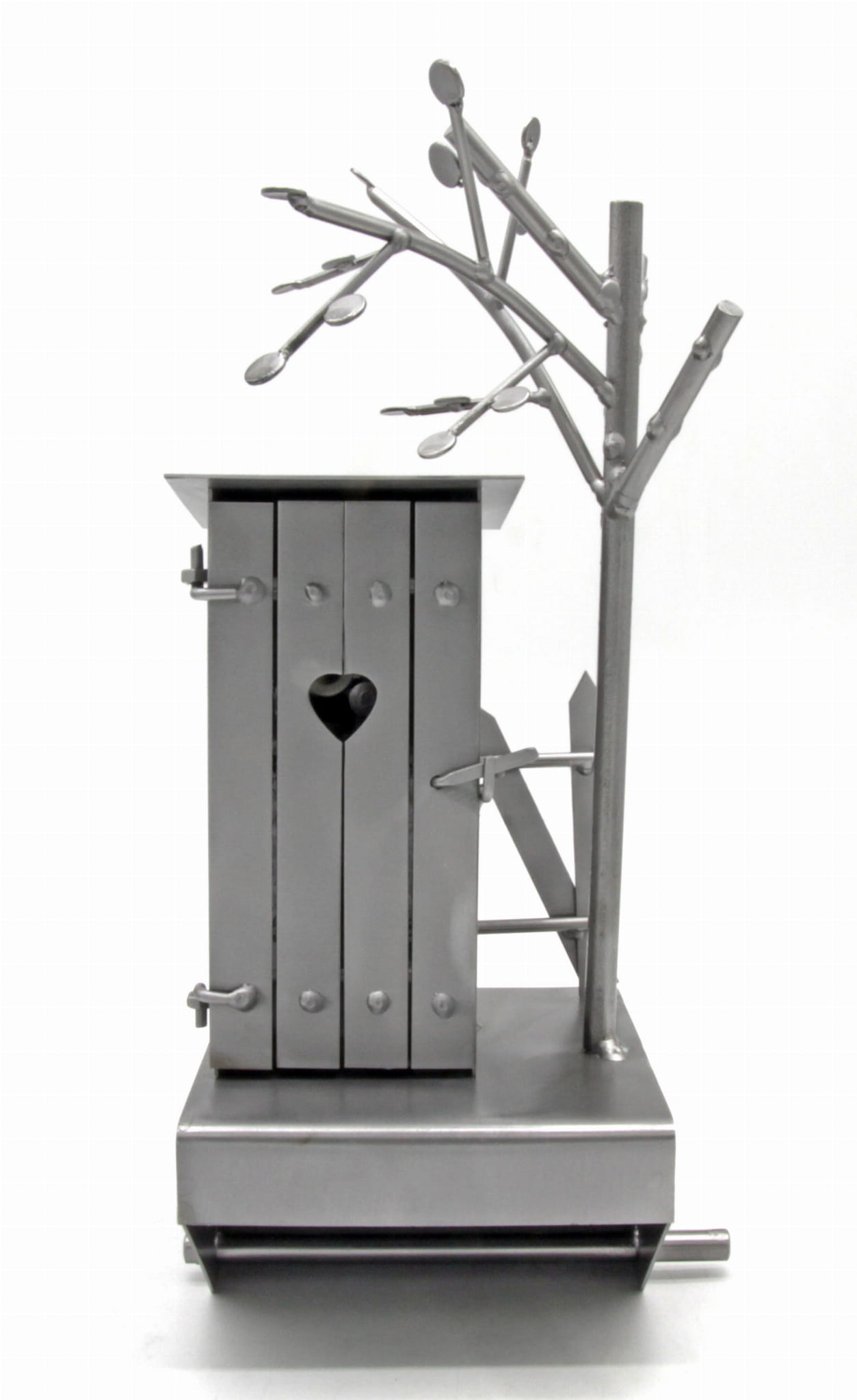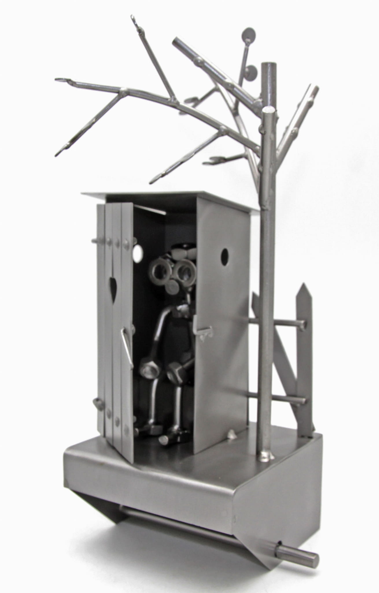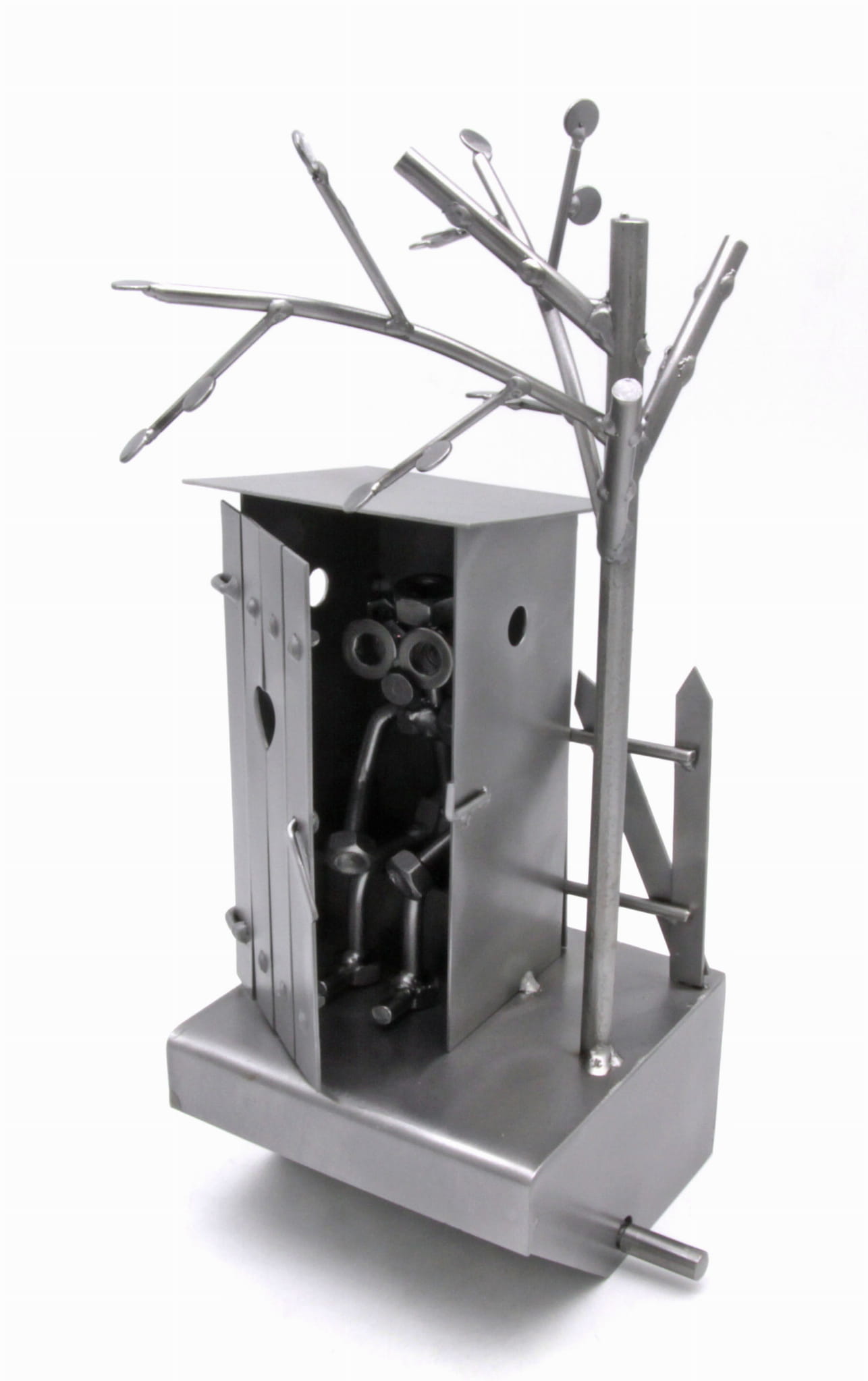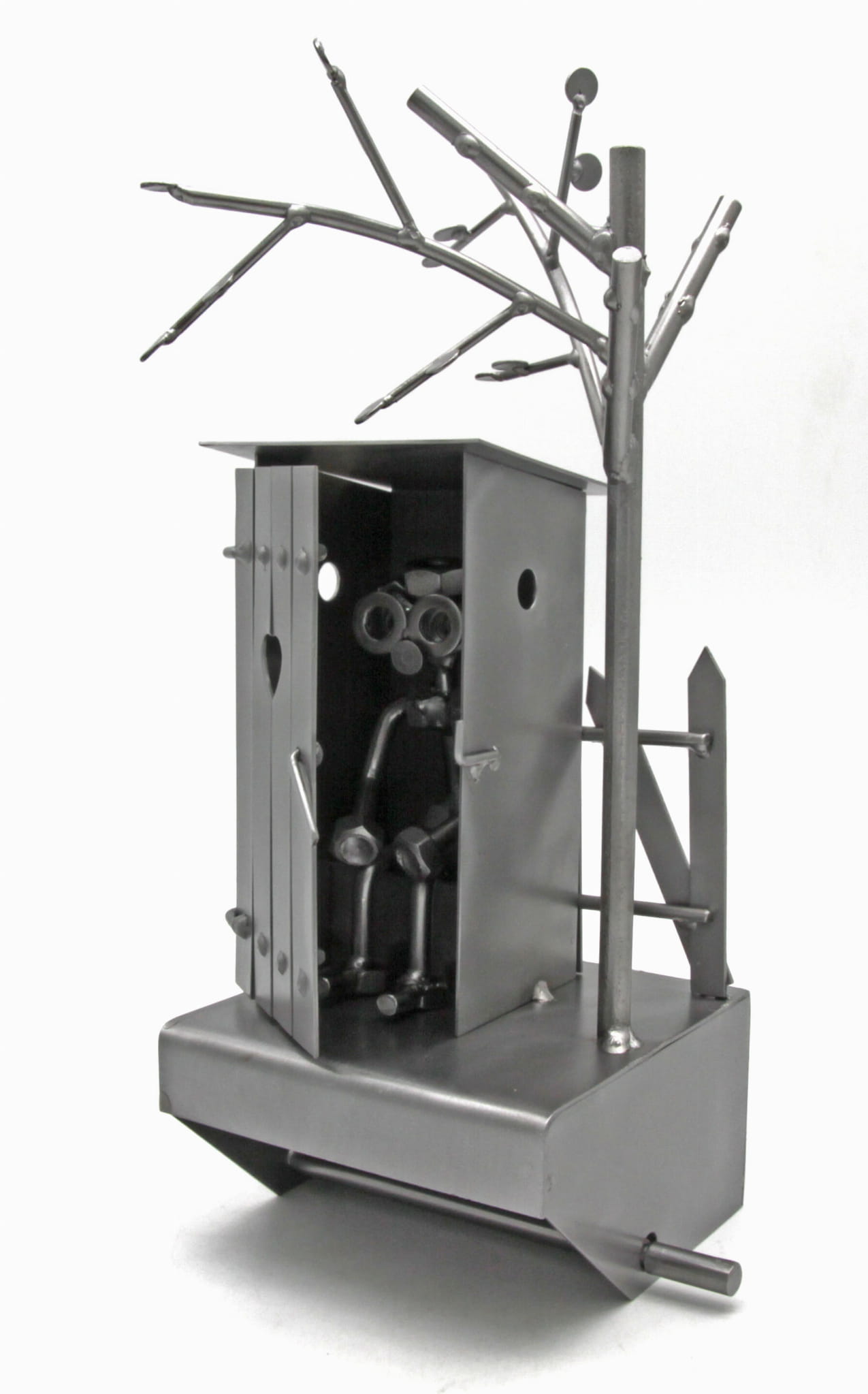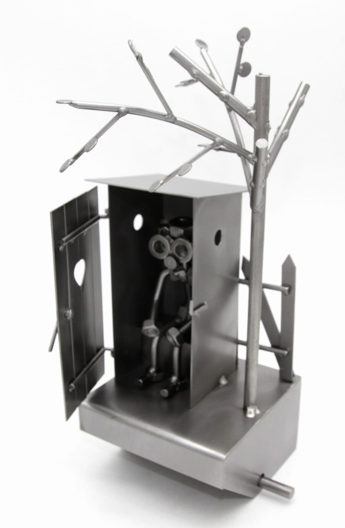 Figurka jest wykonana w 100% ręcznie ze stalowych blach, prętów i nakrętek przez naszą firmę.