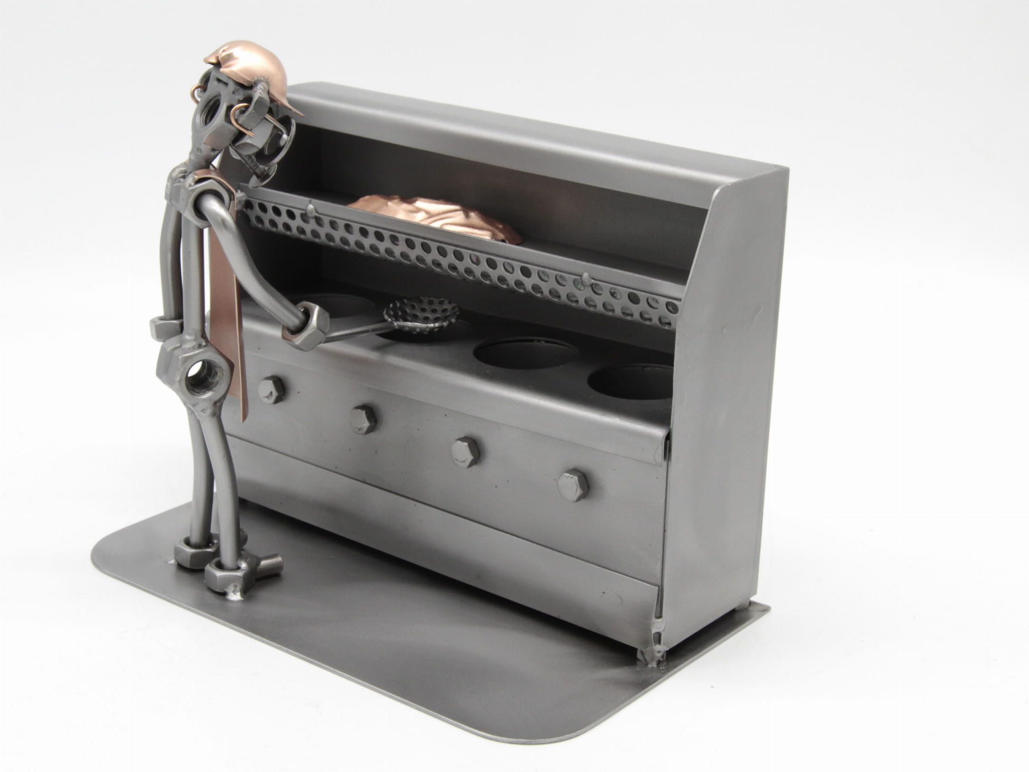 Figurka jest wykonana w 100% ręcznie ze stalowych blach, prętów i nakrętek przez naszą firmę.