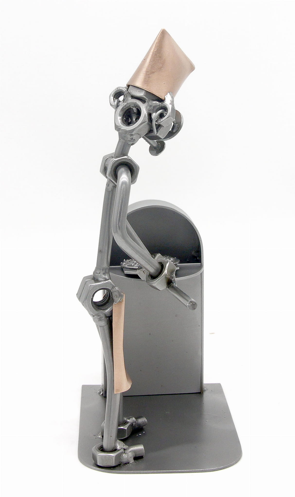 Figurka jest wykonana w 100% ręcznie ze stalowych blach, prętów i nakrętek przez naszą firmę.